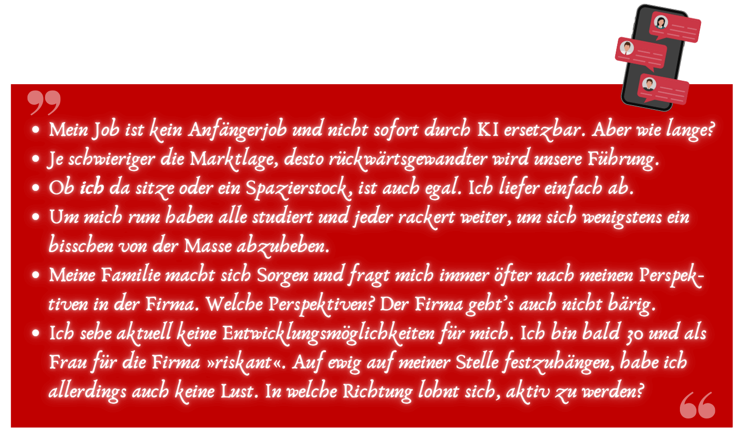 Rückzug: Ganze 17 % der Frauen wollen in nächster Zeit die Karriereleiter hoch. - Ist das betrieblich hilfreich?
