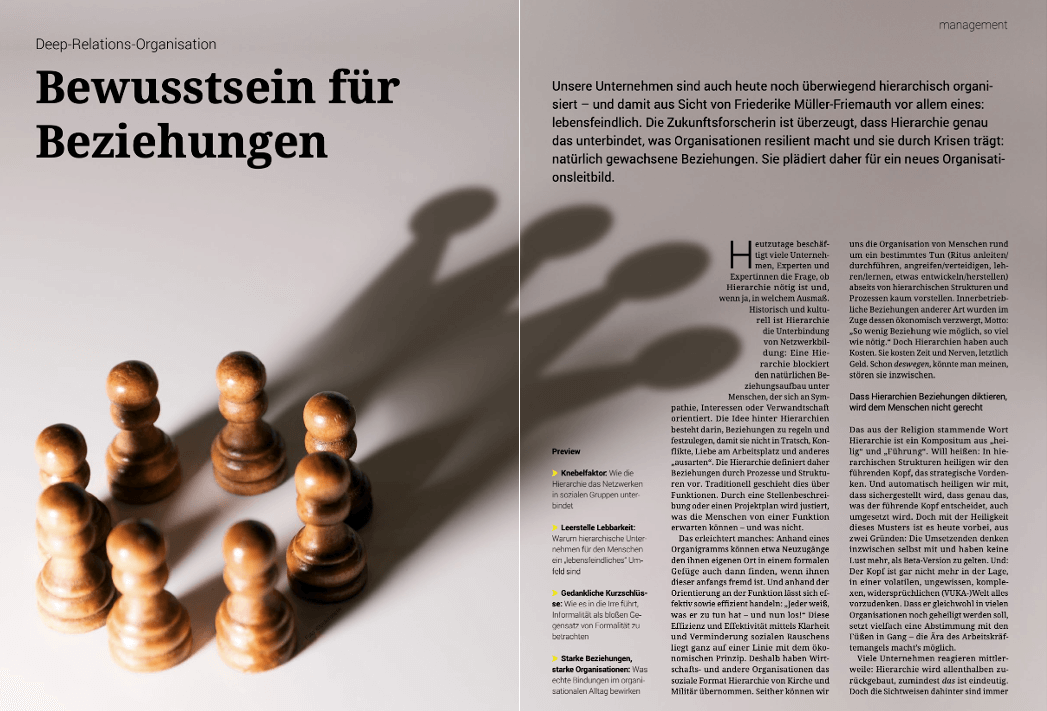 Wir zeigen, wie Business-Resilienz entsteht: wie Führungsverantwortliche blinde Management-Flecken erkennen, wie sie horizontale Leistung und Karrieren ermöglichen, wie sie ihre Unternehmen zu Longevity Companies weiterentwickeln.