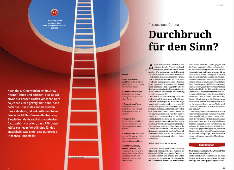 Status quo zum Thema Purpose, Karriere 4.0, Konsequenzen der Störfallwirtschaft u.a.